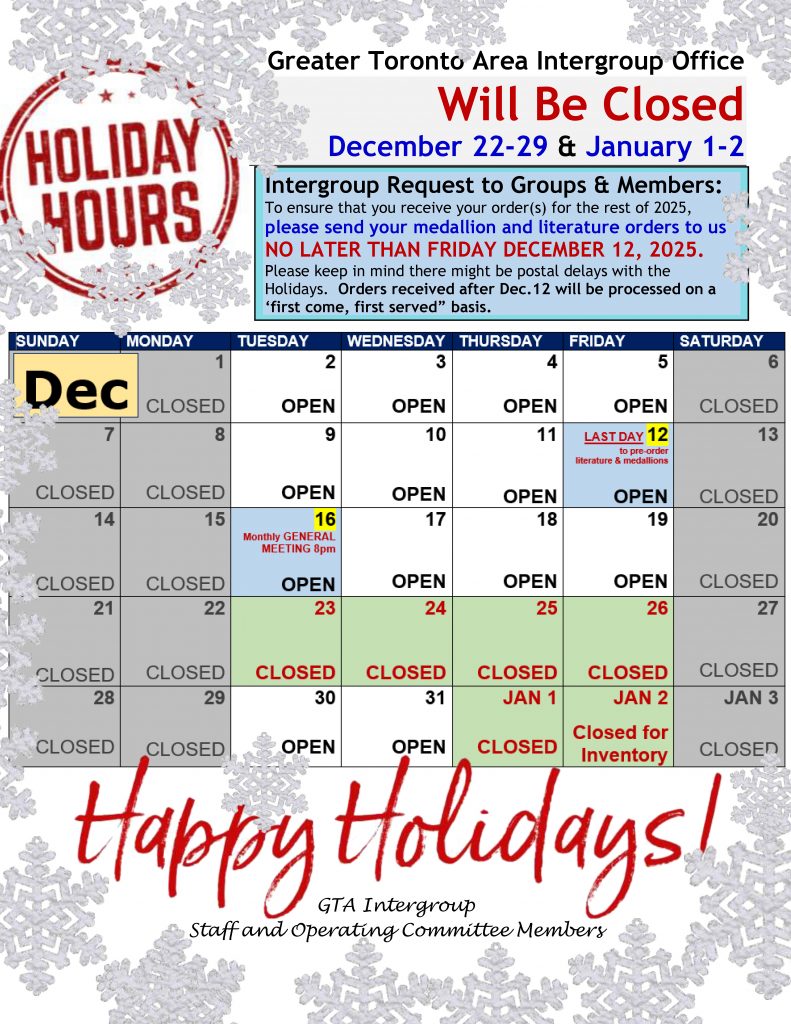 Intergroup Office – Holiday Hours!